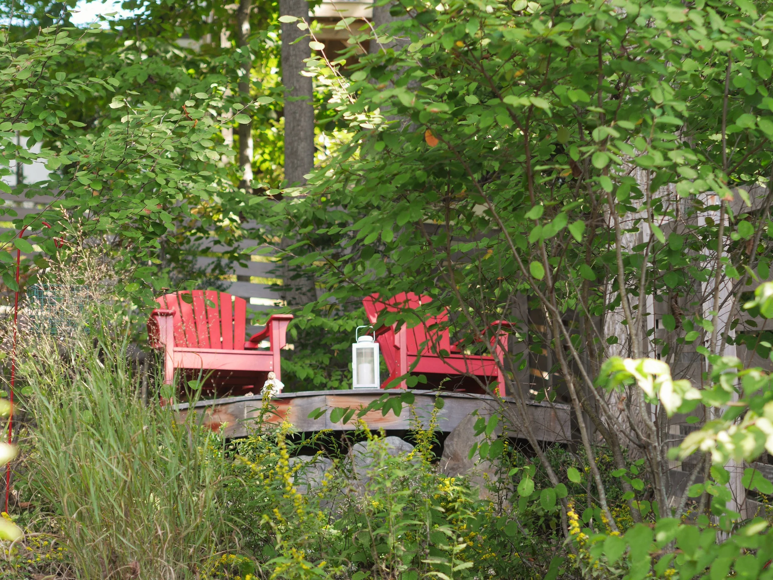 We added native understory trees, shrubs, and perennials beneath existing canopy trees to create a peaceful place to sit and watch the birds.